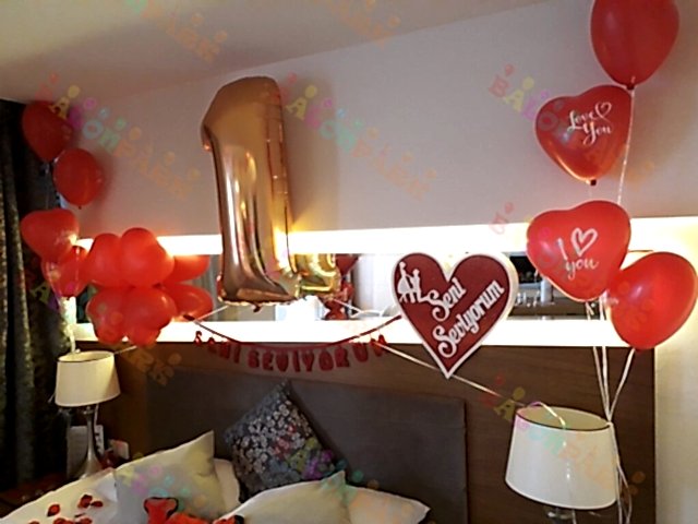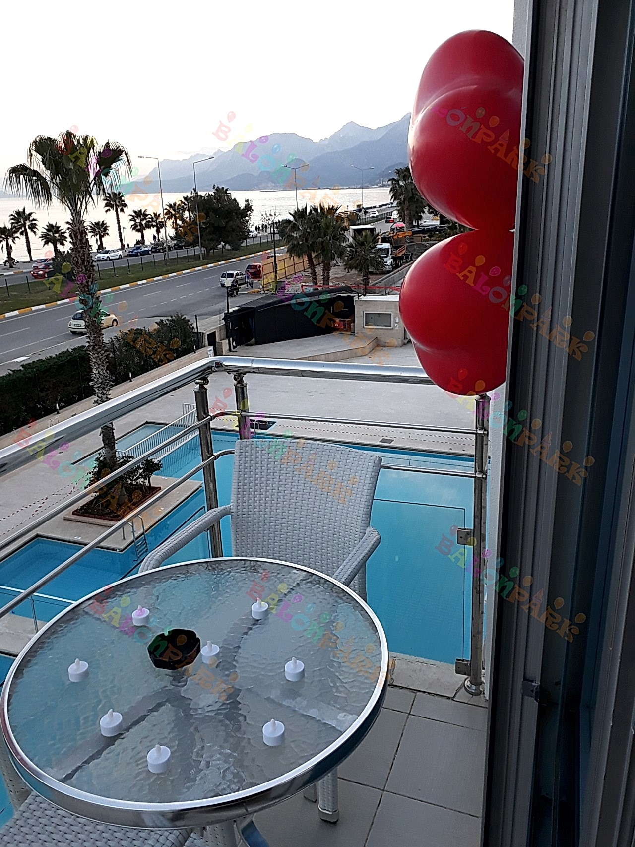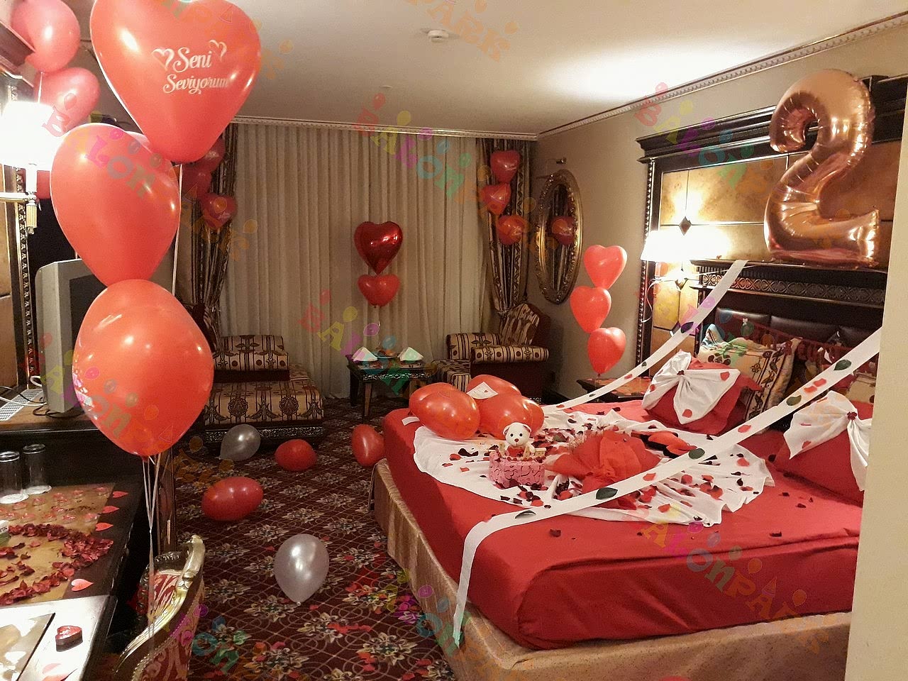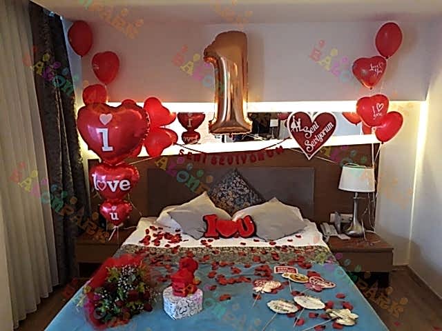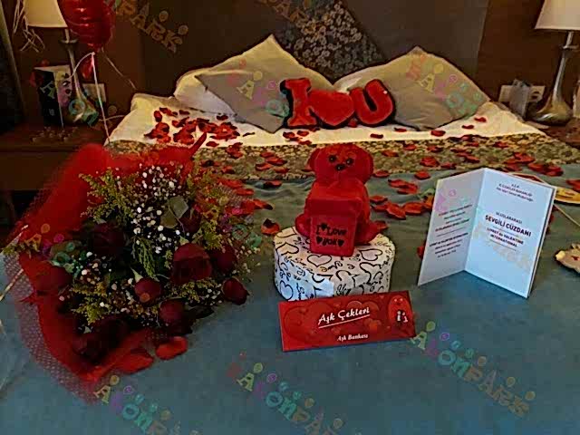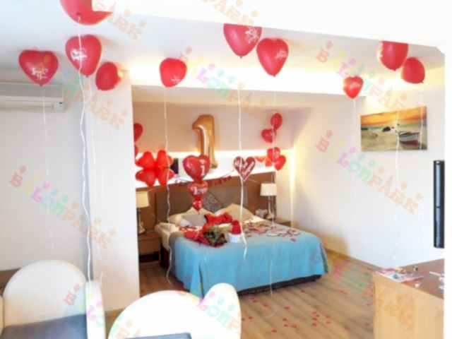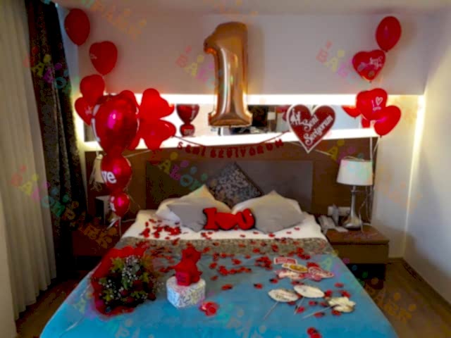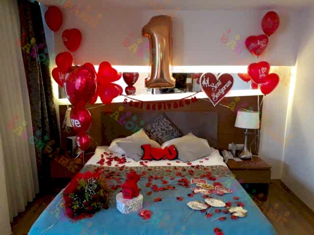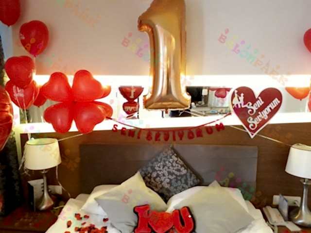 1. Süsleme Paketi: İstediğiniz yere gelerek süslemenizi istediğiniz saatte hazır ediyoruz. Hotel, Ev, Yazlık, Restoran vs. hiç farketmez. Bize tarih ve saat belirtmeniz yeterli. Aşağıda yer alan yıldönümü resimleri tamamen firmamıza aittir. Aşağıda yer alan fotoğraflar Antalya Sea Life Hotel ve Club Hotel Sera’da yapılmış yıldönümü süslemesi fotoğraflarıdır. Tüm paketlerimizde yıldönümü süslemesi, yıldönümü balonu, çikolatası ve romantik hediyeleri bulunur. Antalya içi evlilik yıldönümü süsleme paketimiz (Konaklama yemek vs. dahil değildir.) Daha ekonomik paketler için aşağıdaki paketleri inceleyebilirsiniz.